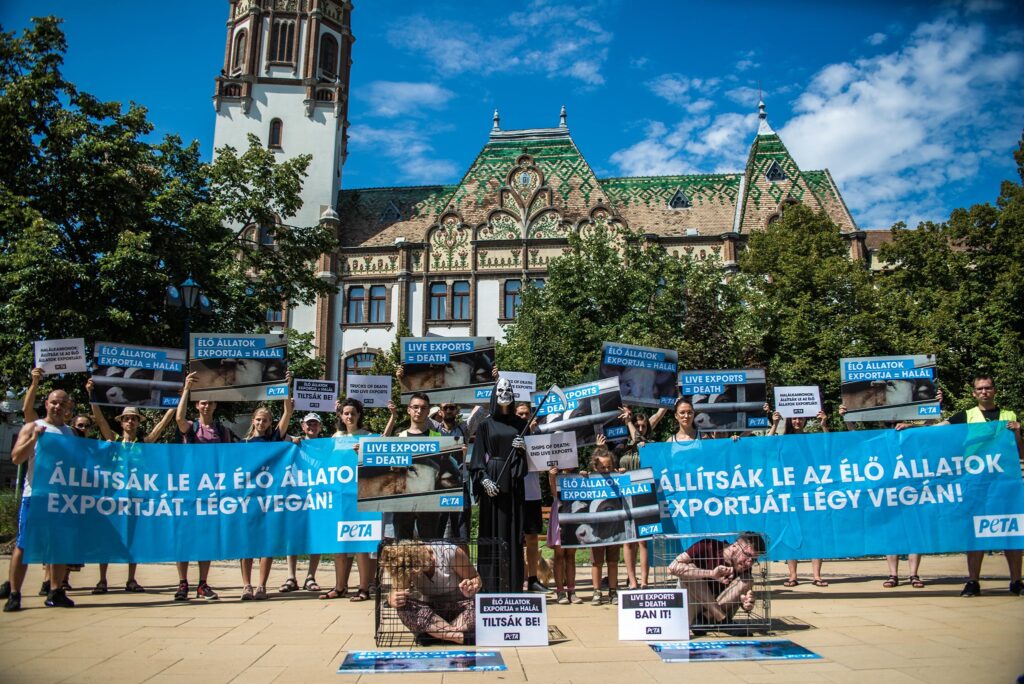 Nemzetközi Állatjogi Világnap aktivisták állnak molinóval